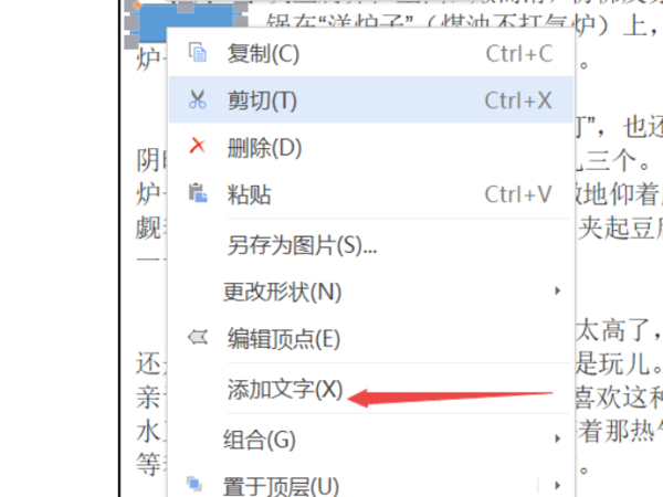 6、最后右击鼠标,弹出一个菜单,找到添加文字的选项。