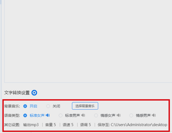 在这个页面可以修改很多选择,比如:添加背景音乐、修改语速快慢、修改背景音乐大小、修改文本音量大小等。修改完毕点击下一步