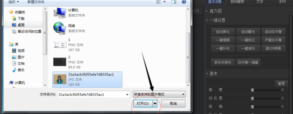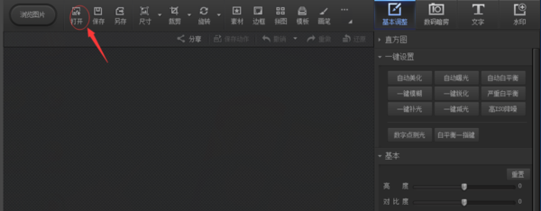 2、光影魔术手安装成功后,在桌面找到并打开软件,然后点击打开软件界面左上方的、在电脑桌面上找到需要制作照片的原图,点击打开,具体操作如下。