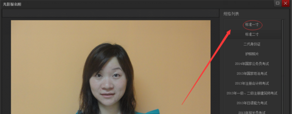 2、接下来选择需要的照片尺寸,1寸可用于简历照、毕业照,2寸可用于通行证照,然后点保存即可。