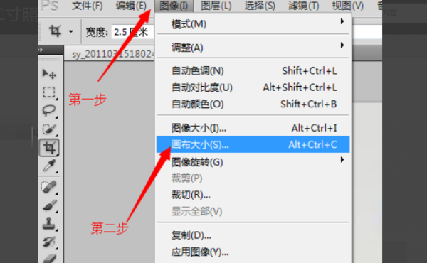 3、点击“图像”-“画布大小”,打开画布大小对话框。按照下图进行设置,然后点击确定。
