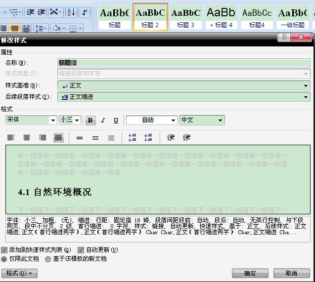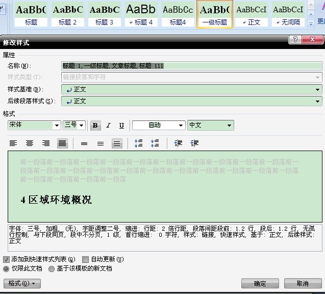 3.当然标题 1,标题 2,标题 3 的属性(如字体大小,居中,加粗,等等)可以自行修改的。修改方法:右键点击“标题 1”选“修改”,会弹出修 改菜单,您可以根据自己的要求自行修改。