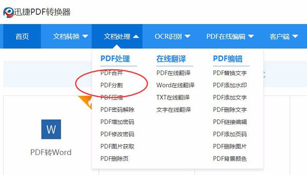 点击“文档处理”中的PDF分割功能进入到分隔页面!