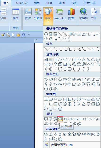 如何在word中画一个云形