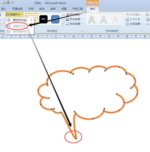 插入云形图形后,点击格式中的编辑形状,编辑顶点,可增加顶点,删除顶点,按住黑点可拖动变换形状,调整出自己需要的形状即可。