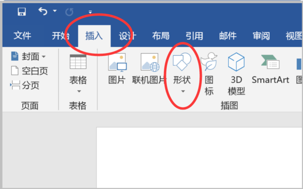 1、首先在打开的Word文档中点击“插入”选项,在其选项卡中点击“形状”选项。