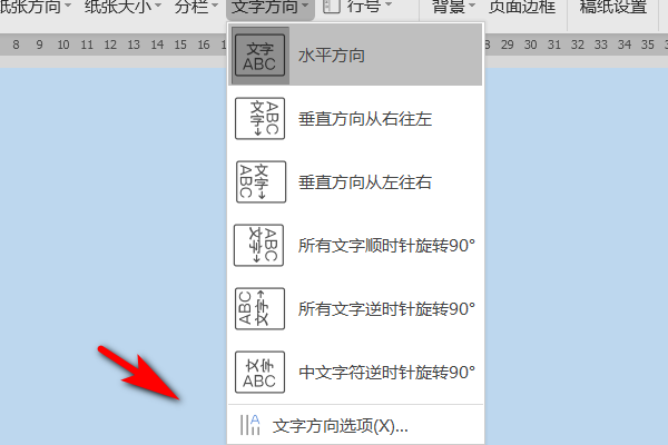 4、接着在弹出的下拉菜单里面选择文字方向选项这个选项进入。