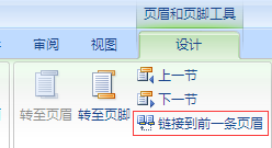 5.在”页眉和页脚工具“标签页中,单击”链接到前一条页眉“,使它处于灰色状态,点击”关闭页眉页脚“
