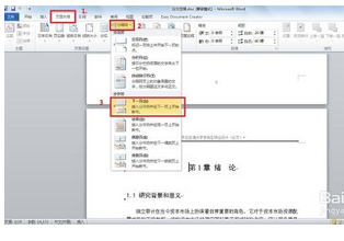 3.点击”页面布局“,然后是”分隔符“,再是”分节符“,最后点击”下一页“,这样的结果是多出了一也空白的