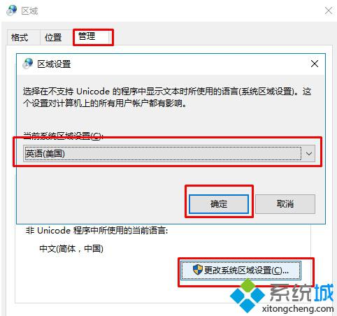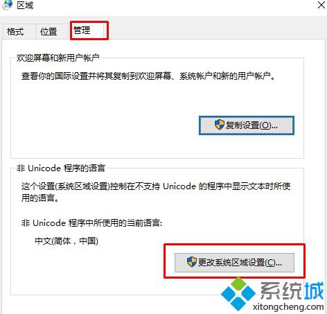4、在区域下,切换到“管理”界面,然后点击“更改系统区域设置”按钮。