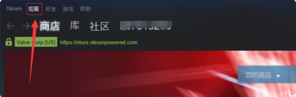 ①打开STEAM界面,找到并点击左上角的“视图”选项。