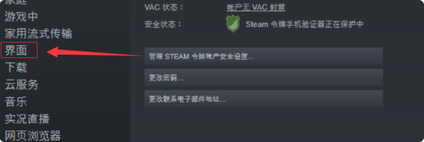 ③在弹出的界面左侧找到“界面”的选项,并使用鼠标左键点击。