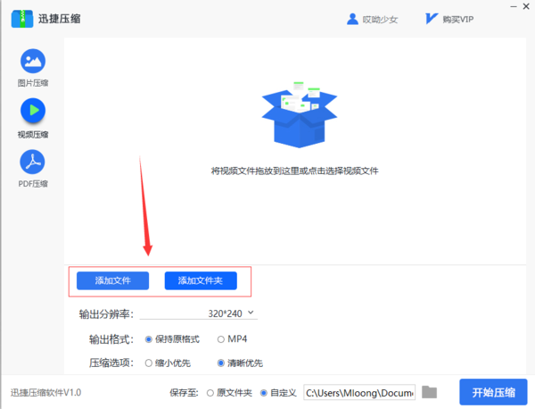 二、添加文件,把要进行压缩的视频添加进操作界面,点击添加文件或者添加文件夹就可以进行添加。