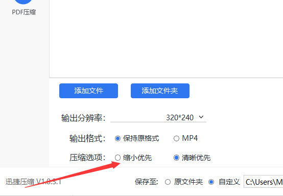 三、界面下方有三个压缩选项可以选择,输出分辨率、输出格式以及压缩选项,选择一个需要的即可。
