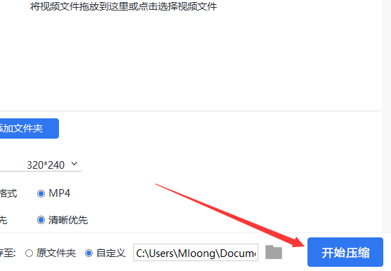 2、在视频压缩页面点击“选择文件”将视频文件添加到这个的页面上的,鼠标点击也是可以将文件移动至页面的。
