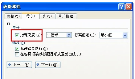 如上图一样,将选项卡切换到“列”,然后勾选“指定高度”,之后,填写一个高度值即可。这样,在word表格中输入文字的时候,行高和列宽就不会随着内容的增多而自动改变大小了。