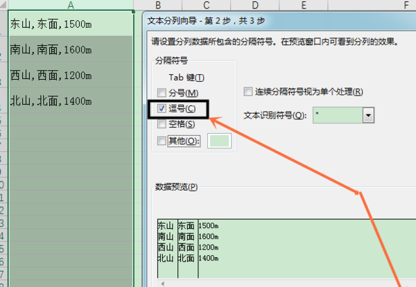 5.在分隔符号列表中,选择可作分类标记的符号,比如逗号,然后点击下一步-完成即可