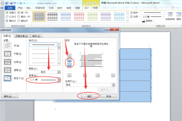 4、在宽度下边选项中选择一个合适的线条宽度,然后在右侧边框线条按钮中,选择每行下框线,取消其他边框的选中状态,并点击下面的确定按钮即可。