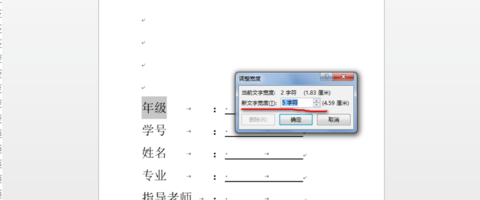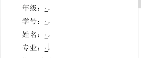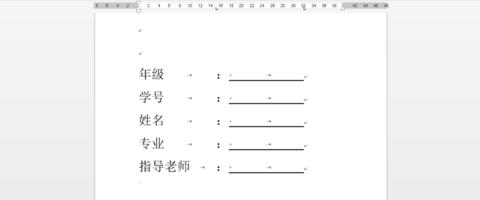 5、接下来就是调整文字和下划线。把word光标放在【:】前面,按下【tab键】从第一行开始,依次在所有的【:】前面按下【tab键】。然后把光标放在第一行的下划线的后面。按下【tab键】在每行的下划线后面按下【tab键】。
