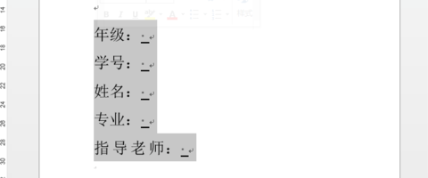 1、设置字体格式和下划线起点首先把封面中下划线前面的所有文字大小,字体等等信息设置好。如图,在每个需要设置下划线的位置手动输入一个下划线。