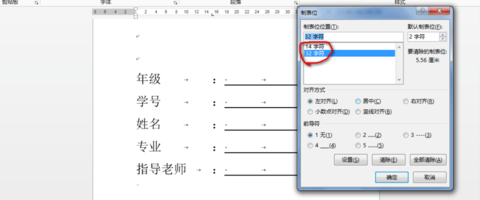 6、如果想调整下划线的位置,选中第二步中选中的内容,【这步非常重要,一定要与前面设置时选中的一样。】点击【段落】---【制表位】。修改数值后-----【设置】---点击被修改的数值,然后点击【删除】,然后就只有两个制表位数值。点击【确定】退出设置。自己看看效果怎样,如果不行,再重复这一步骤进行调整。