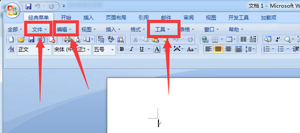 word2007中的编辑、文件和工具都在“经典菜单”下,具体查看步骤如下: