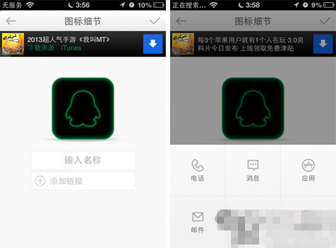 在个人主页中选择自己已经挑选好的图标,即可进入具体图标的设置阶段。按照提示分别输入该图标要显示的名称,并在“添加链接”处选择要关联的功能。