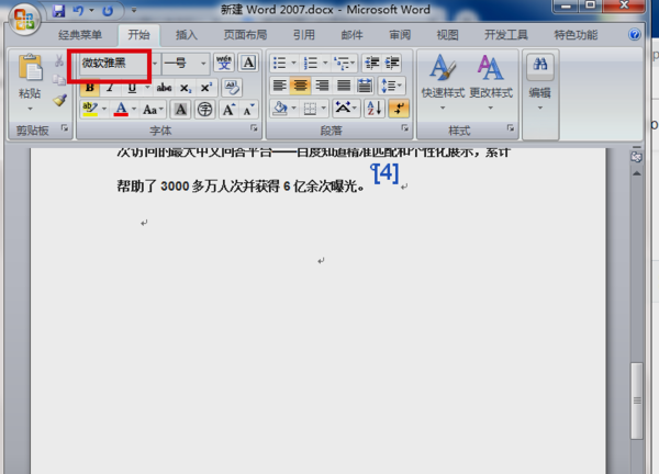 1、在电脑上打开一个word文件,可以发现现在的字体为微软雅黑。