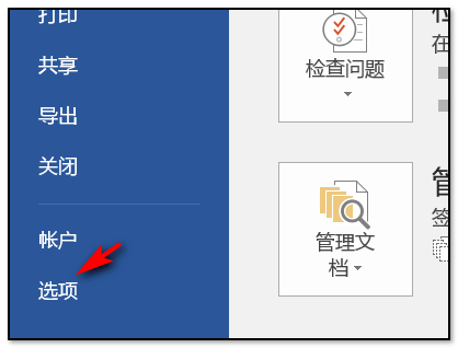 2、点击Word菜单栏-->文件-->选项-->校对;