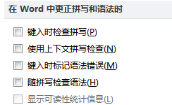 3、在弹出的“在Word中更正拼写和语法时”选项栏中,取消所有的选中,如下图,这样Word就不会自动检查了;
