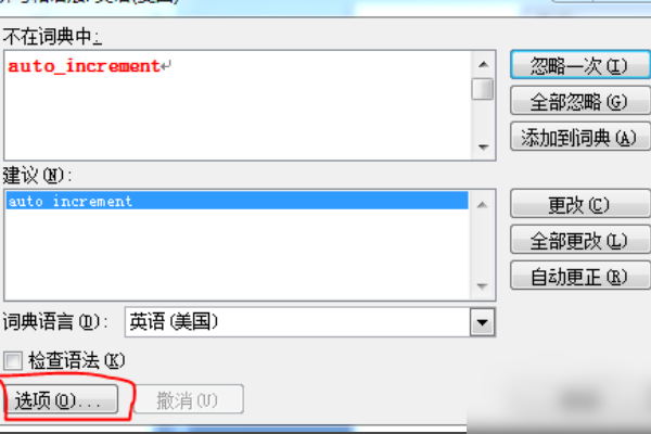 3、即可打开“选项”对话框,选择左侧菜单栏中的“拼写检查”选项。