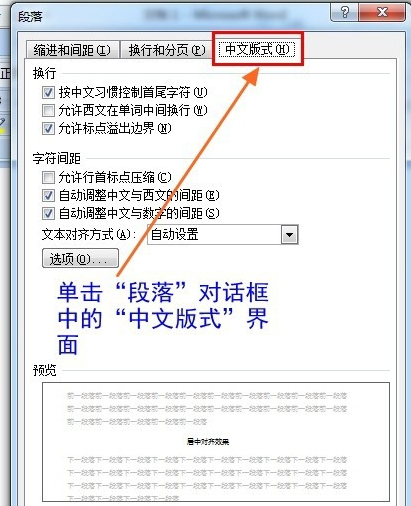 第三步:单击“段落”对话框中的“中文版式”界面。