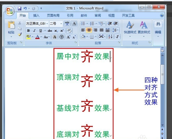 第六步:回到文档编辑界面,就可以看见对齐方式的效果。