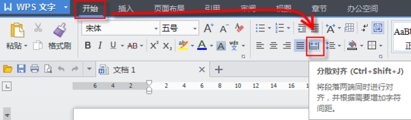 WPS 文字的分散对齐在【开始】选项卡中,看下图的位置: