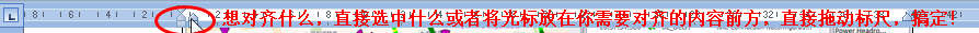 三,选中所有行,在标尺上点二下,会有二个小直角,调整位置,可以看到字就整齐了。(我只选中了一行,方便你对比看效果)(图三)