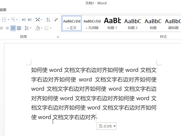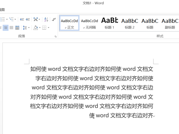 5、这样Word文本中的文字就全部设置成了向右对齐了。