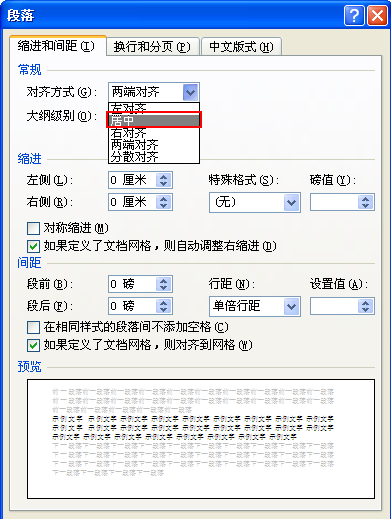在Word文档中,文字对齐方式居中的设置方法: