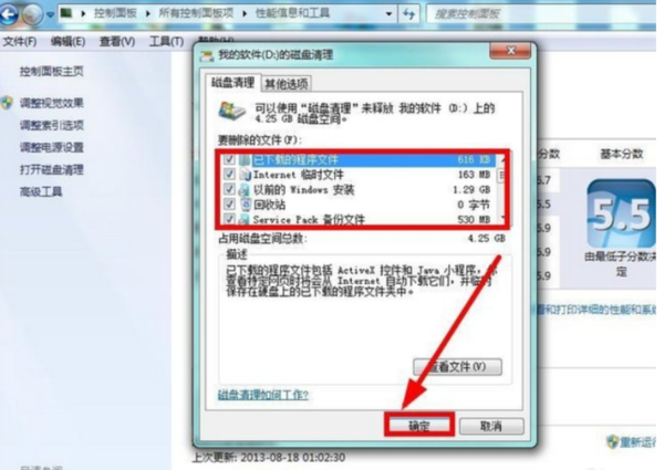 6、然后我们再在磁盘清理里面“全选”要清理的文件“确认”。
