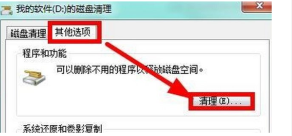 8、如果嫌磁盘清理的不够彻底我们再选择“磁盘清理”里面的“其他选项”再进行“清理"。