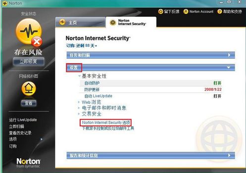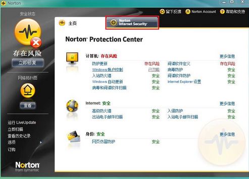 双击任务栏诺顿的图标打开诺顿的设置主页: