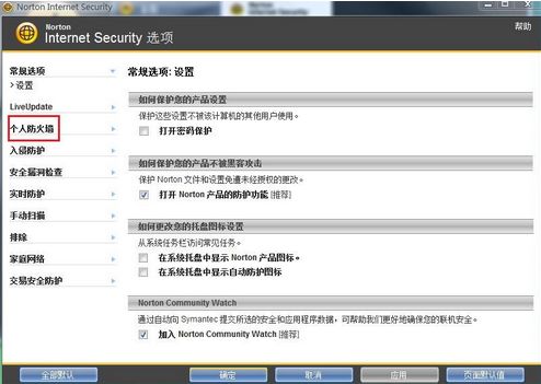 点击设置按钮,再点击Norton Internet Security选项: