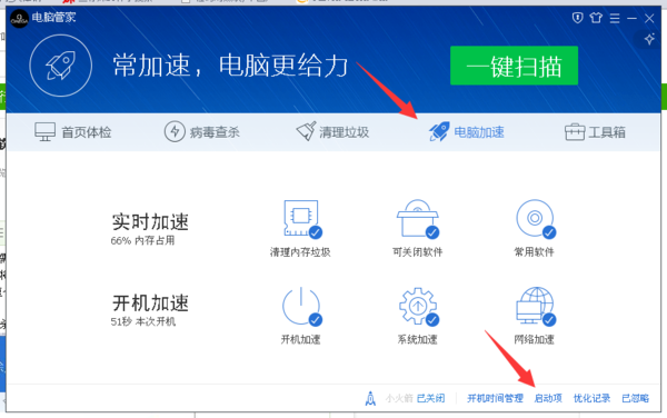 打开腾讯电脑管家~~~~电脑加速~~~~启动项~~~~服务项