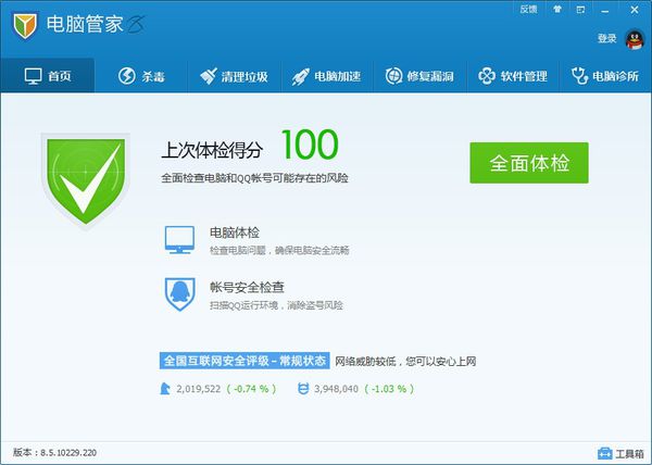 5,电脑管家8.5正式版后,推出了电脑、QQ帐号检查2合1功能,全方位护航你的在线生活