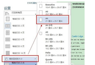 3.单击“纸张大小”中的箭头,并选择所需的纸张大小。