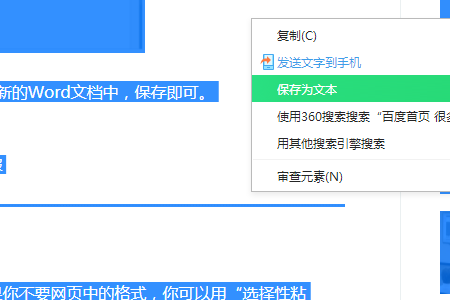 1、首先我们打开网页,选中想要打印的内容,之后右键单击选择“保存为文本”。