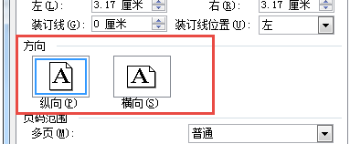 4、整篇按照横版排版,需要在页面设置中设置页面方向;也有部分文档中间有几页是要求横向排版,需要先设置好分隔符后再设置横向。