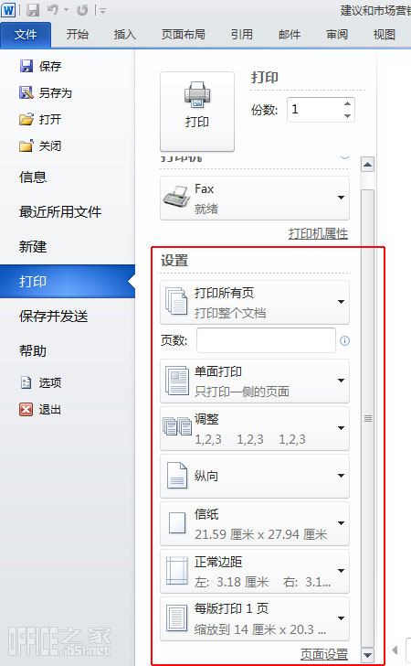 基本页面设置组合在打印预览屏幕的“设置”中,如下截图: