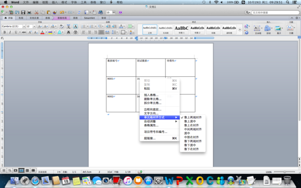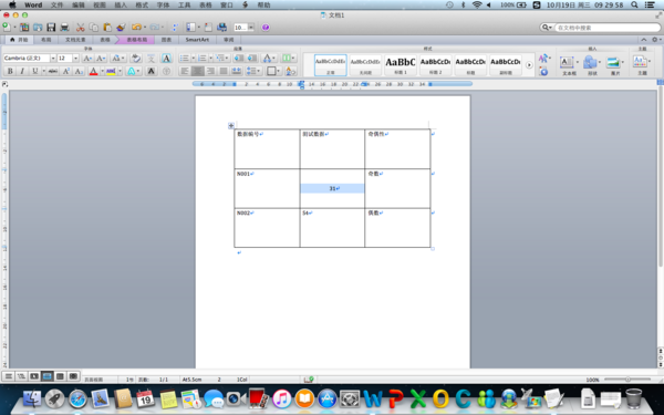 1.使用Word for Mac 2011打开一个含有表格的word文档。