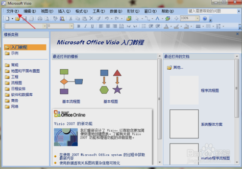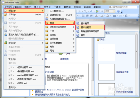 在文件中依次选择常规-基本流程图。