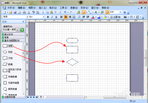 通过拖拽的方式可以将需要的形状放置到工作图纸上。